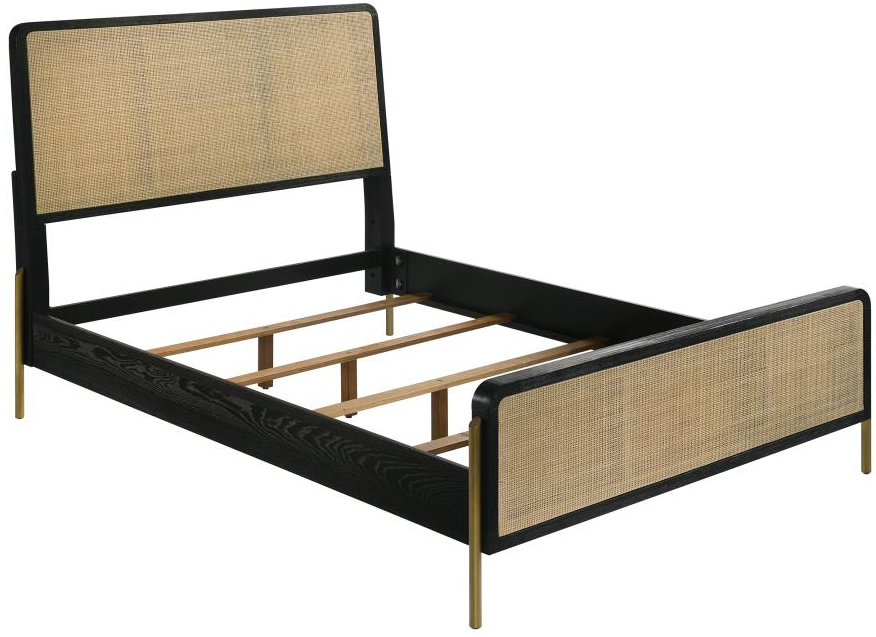 Head and footboards feature woven rattan that infuses warmth with its natural finish