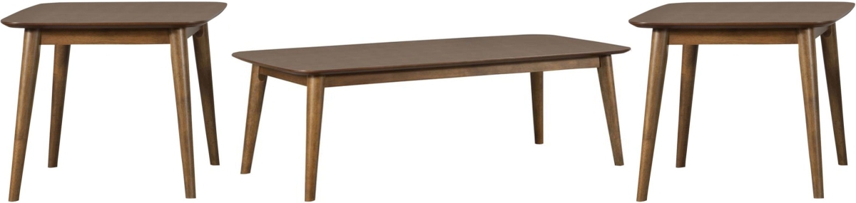 Create a subtle vintage flair with this mid-century modern three-piece occasional set, complete with a coffee table and two end tables. Keep books, table lamps and more on this collection of essential living room furniture pieces. Designed with a natural tone walnut veneer finish throughout.Read More