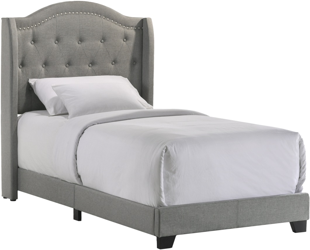 The Rhyan upholstered bed collection features a smoke fabric covering an tufted cushion, arched headboard with eye-catching matte chrome nail head accents. The poplar and rubberwood construction rounds out this collection, making it not only stylish but durable as well.Read More