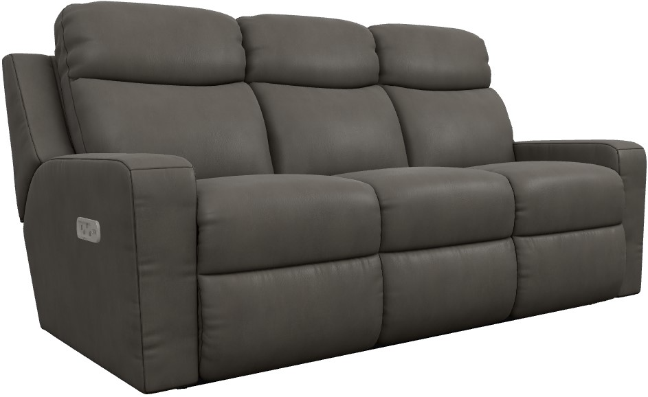 The bold track arms and exposed wings of the Emmons Power Reclining Sofa with Headrest and Lumbar add a linear edge to cozy, laid-back comfort. Tall, cushy backs and smooth chaise recline offer fully adjustable support in the outer seats.Read More