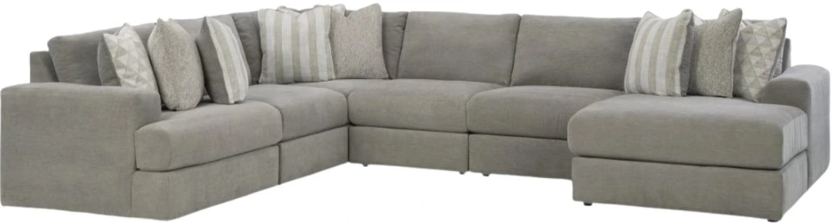 Includes 6 Modular Pieces: Left-arm facing corner chaise, right-arm facing corner chaise, wedge and 3 armless chairs