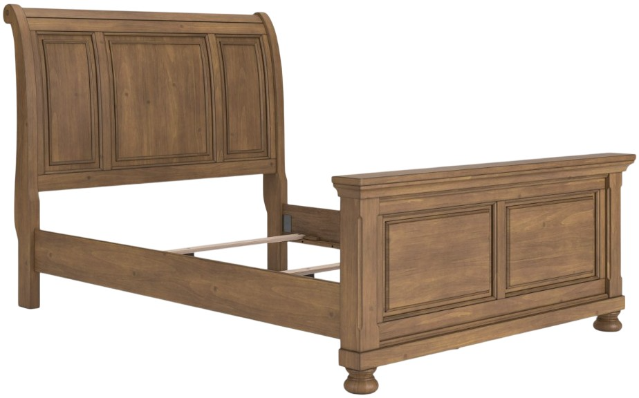 A relaxed take on casual traditional design, this queen sleigh bed strikes a comfy pose with a classic sensibility. Its timeless design and chestnut brown wood tone create a welcoming retreat tailored to your laid-back lifestyle. Now there’s a bed with staying power.Read More